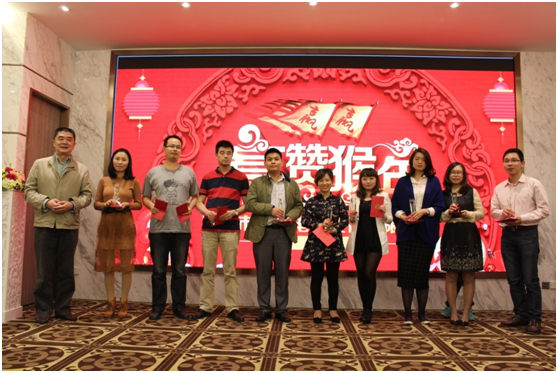 董事長的致辭正式拉開會議序幕,伴隨著美味佳肴,現(xiàn)場為2015年度辛勤付出的優(yōu)秀員工進行了頒獎表彰。